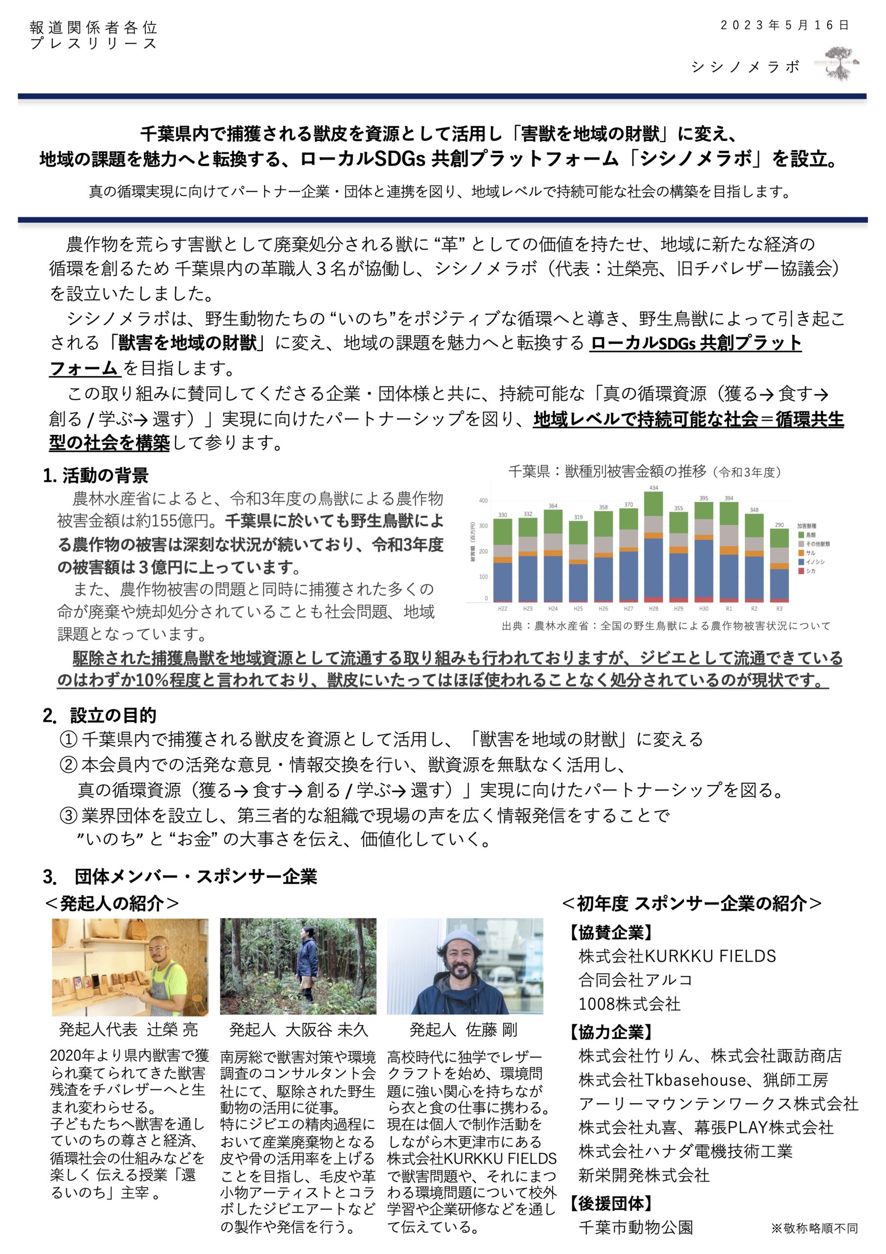 千葉県の革職人3名で立ち上げた千葉県ジビエレザー協議会「シシノメラボ」。